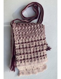 and learn to weave a warp faced band. Then seam it all together into a bag with an